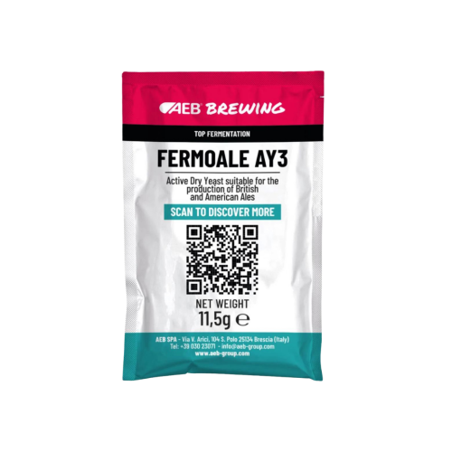 Levedura muito versátil, de origem inglesa, para a produção de cervejas Ale em estilo inglês e americano (ex. APA, IPA, Imperial/Double IPA, Imperial Stout, Porter, Brown Ale, Barley Wine, etc.). Possui uma ótima capacidade atenuante, uma elevada velocidade de fermentação e é mediamente floculante. FERMOALE AY3 desenvolve um perfil aromático ligeiramente frutado e limpo.