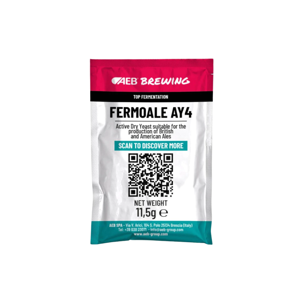 Levedura muito versátil, de origem americana, para a produção de cervejas Ale em estilo americano e inglês (ex. APA, IPA, Imperial/Double IPA, Imperial Stout, Imperial Porter, Brown Ale, American Barley Wine, etc.). Apresenta uma ótima capacidade atenuante, uma elevada velocidade de fermentação e é mediamente floculante. FERMOALE AY4 desenvolve um perfil aromático neutro e limpo, com níveis de diacetilo muito baixos.